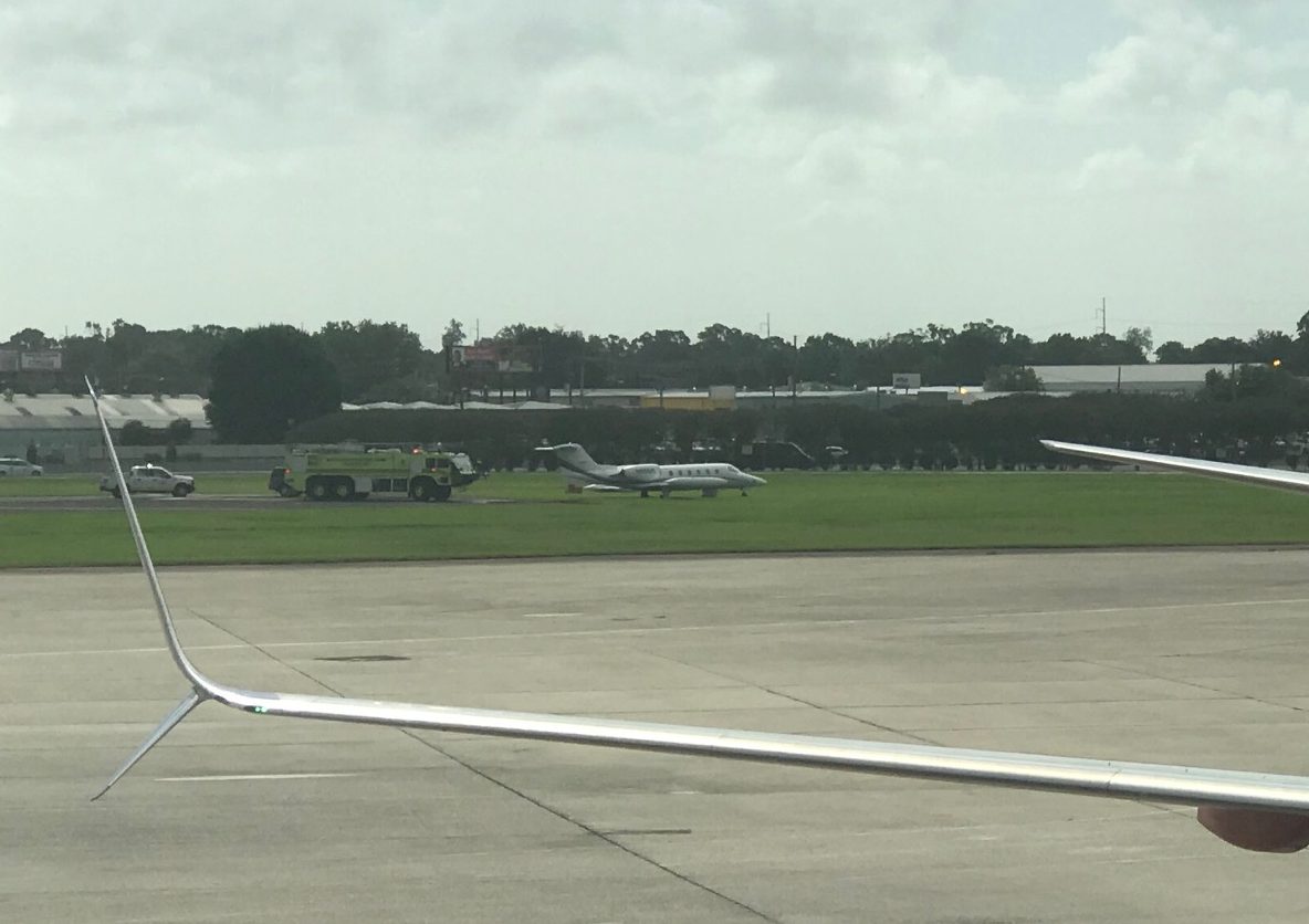 Jet runs off runway at Armstrong International