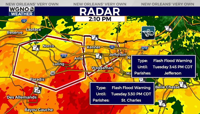 A Flash Flood Warning is issued for Jefferson Parish until 3:45PM Tuesday afternoon while heavy rain in the area continues.